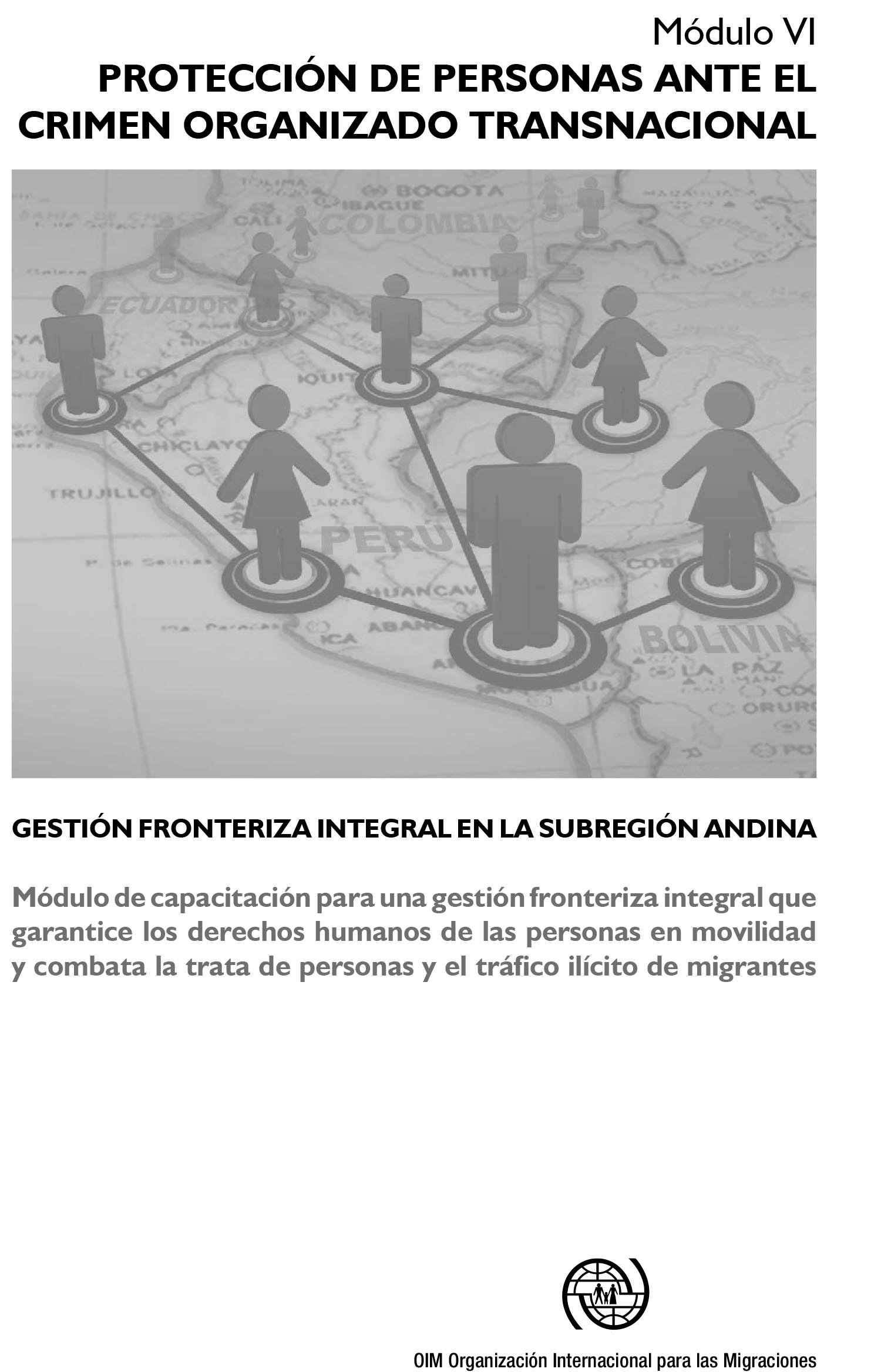La serie Gestión Fronteriza Integral en la Subregión Andina está compuesta por seis (06) módulos de capacitación dirigidos a fortalecer las competencias de agentes públicos y privados para el desarrollo de una gestión fronteriza integral que garantice los derechos humanos de las personas en movilidad y combata la trata de personas y el tráfico ilícito de migrantes. Módulo 1: Gestión de Fronteras, Módulo 2: Movilidad humana, Módulo 3: Control migratorio, Módulo 4: Trata de personas, Módulo 5: Tráfico ilícito de migrantes, Módulo 6: Protección de personas ante el crimen organizado trasnacional.