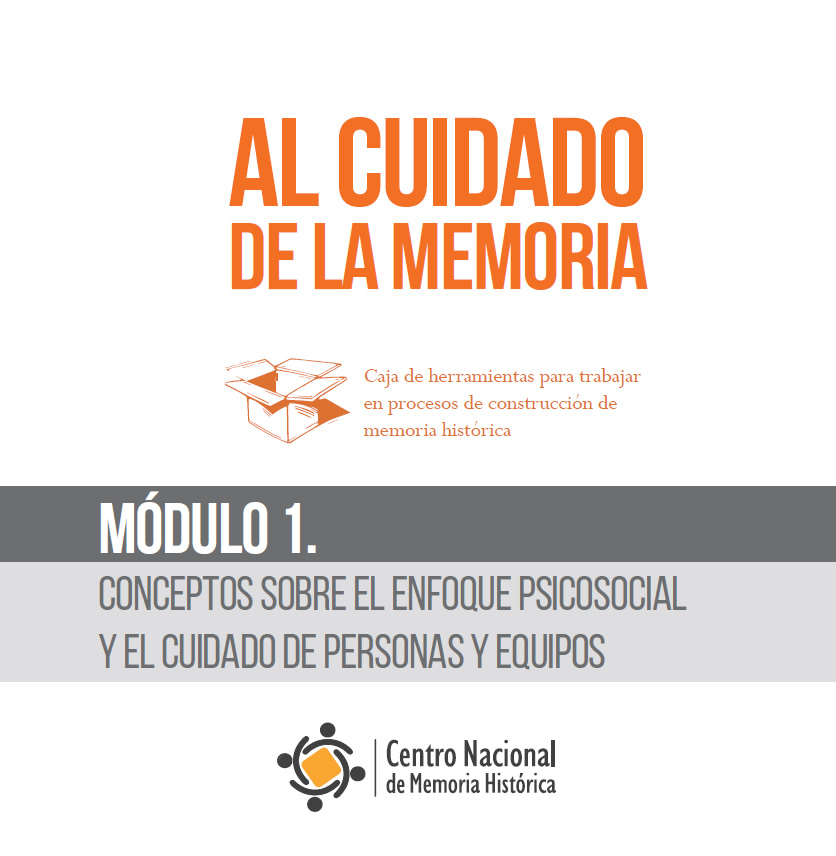 La caja de herramientas para trabajar en procesos de memoria histórica desde una perspectiva psicosocial, como parte de una política institucional de cuidado que tiene como propósito prevenir y atender el desgaste laboral de las personas contratadas y vinculadas a la CNMH. Compuesta por 3 módulos: 1.Concéptos sobre el enfoque psicosocial y el cuidado de personas y equipos. 2.Competencias psicosociales 3.Sugerencias para el cuidado de personas y equipos.